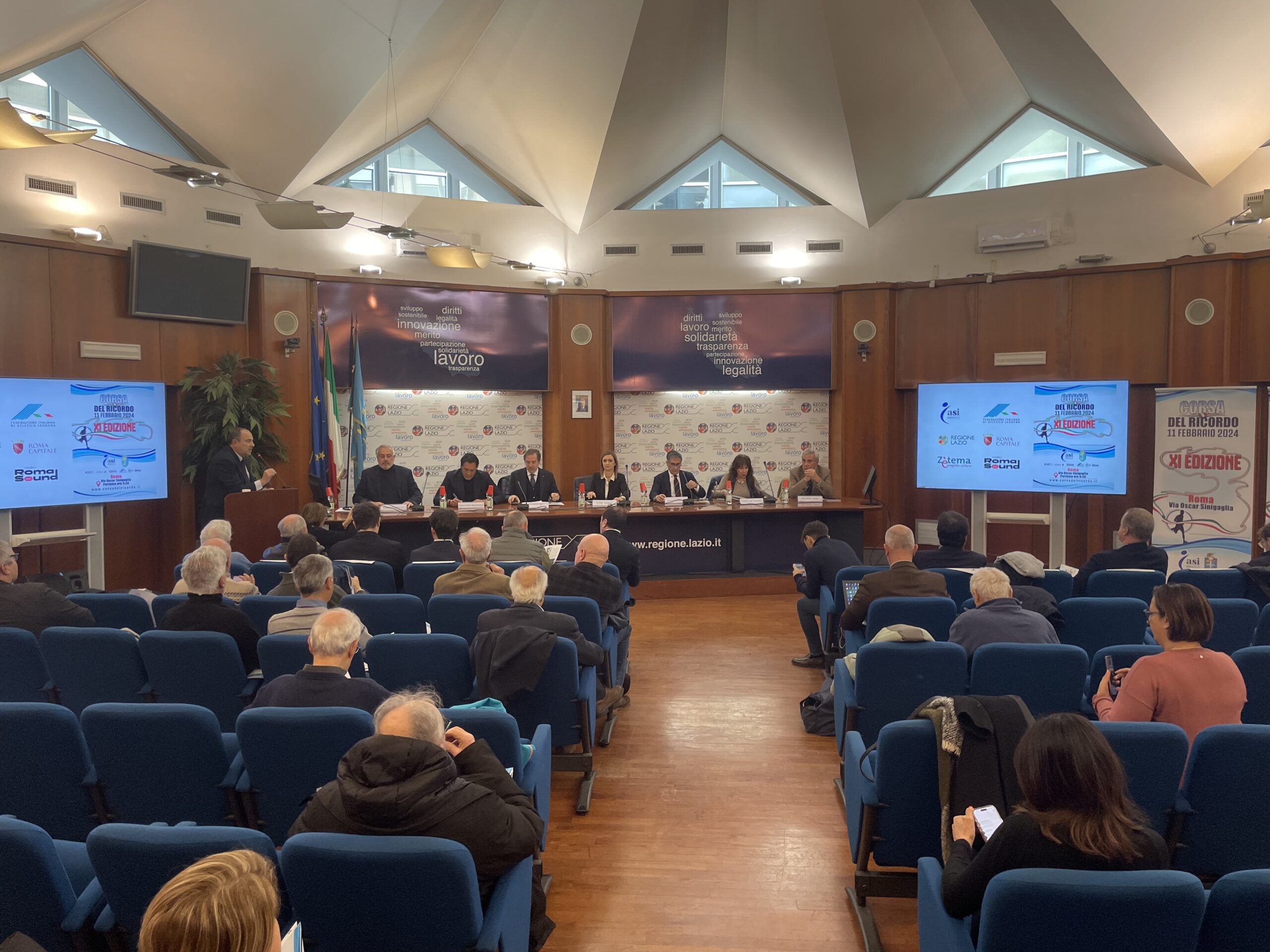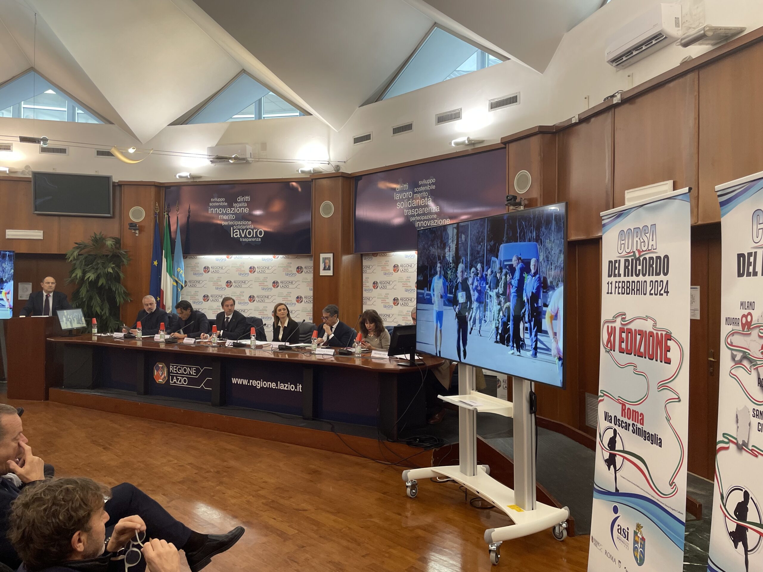 Prova del notevole interesse raggiunto dalla manifestazione è stata la notevole partecipazione alla conferenza di oggi, organizzata e moderata da Luca Montebelli, e soprattutto dalla qualità dei relatori presenti al tavolo ed in sala. A fare gli onori di casa l’Assessore Ambiente, Sport, Cambiamenti climatici, Transizione energetica, Sostenibilità Elena Palazzo che ha ribadito il sostegno della Regione, che negli anni non è mai mancato. Al suo fianco, al tavolo dei relatori, Claudio Barbaro presidente Nazionale ASI, Stefano Mei presidente nazionale Fidal, Diego Nepi Molineris direttore generale di Sport e Salute, Federico Rocca vice presidente Comm.Sport di Roma Capitale Riccardo Viola presidente del CONI Lazio, Donatella Schürzel vice presidente nazionale ANVGD, Roberto Cipolletti, presidente di ASI Lazio ed organizzatore della Corsa del Ricordo. Sono intervenuti anche Fabio Martelli presidente della Fidal Lazio e Andrea Chiarato, Assessore allo Sport del Comune di Latina che quest’anno organizzerà per la prima volta la Corsa del Ricordo nella città pontina. Da remoto ha portato il suo contributo Carla Cace, presidente dell’Associazione Nazionale Dalmata.