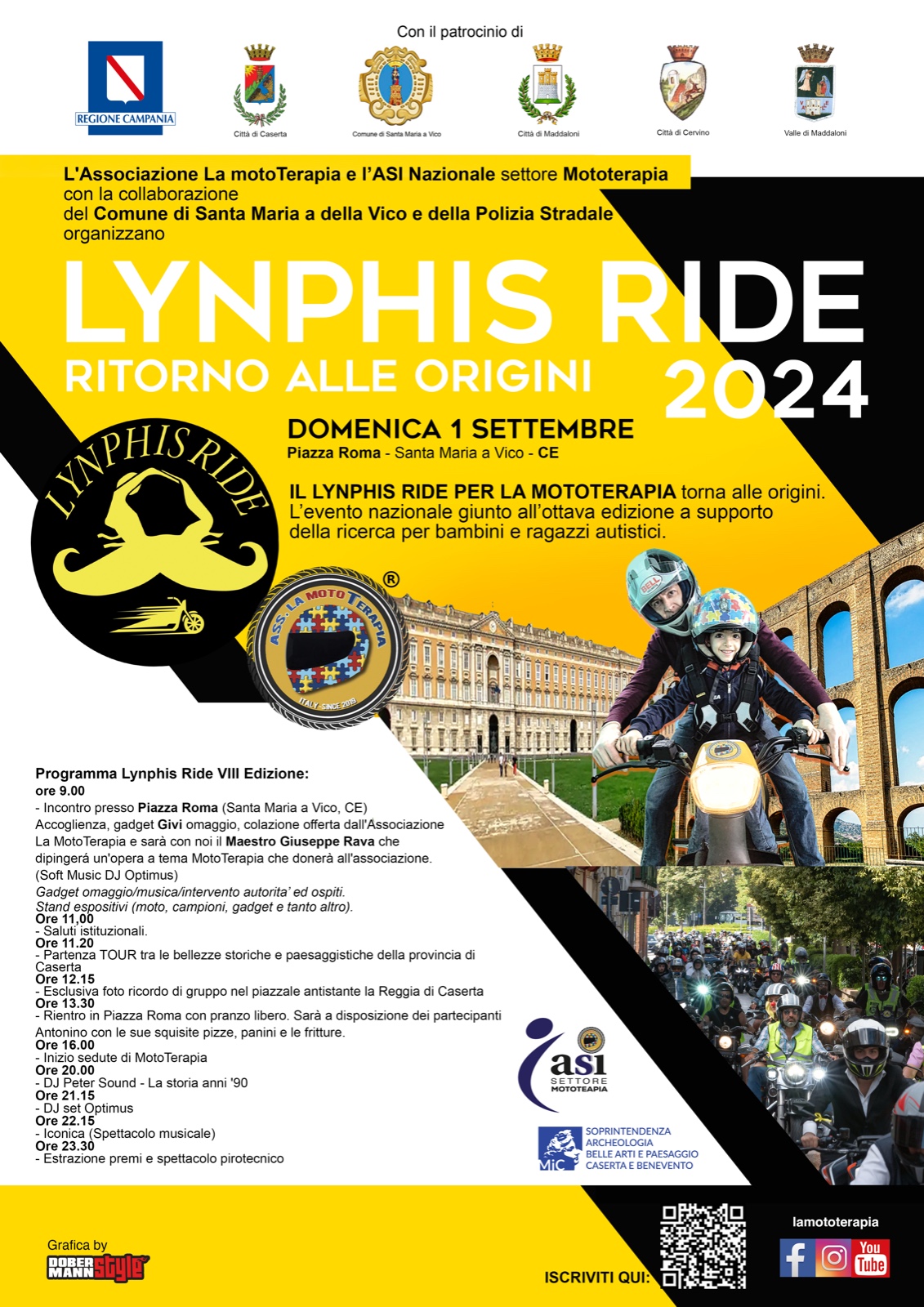Domenica 1 settembre 2024 l’associazione La motoTerapia e ASI Nazionale Settore Mototerapia, con la collaborazione del Comune di Santa Maria a Vico e della Polizia Stradale, organizzano l’ottava edizione del Lynphis Ride, l’evento nazionale in supporto alla motoTerapia (nuova metodologia riabilitativa per i disturbi del neurosviluppo in fase di ricerca).