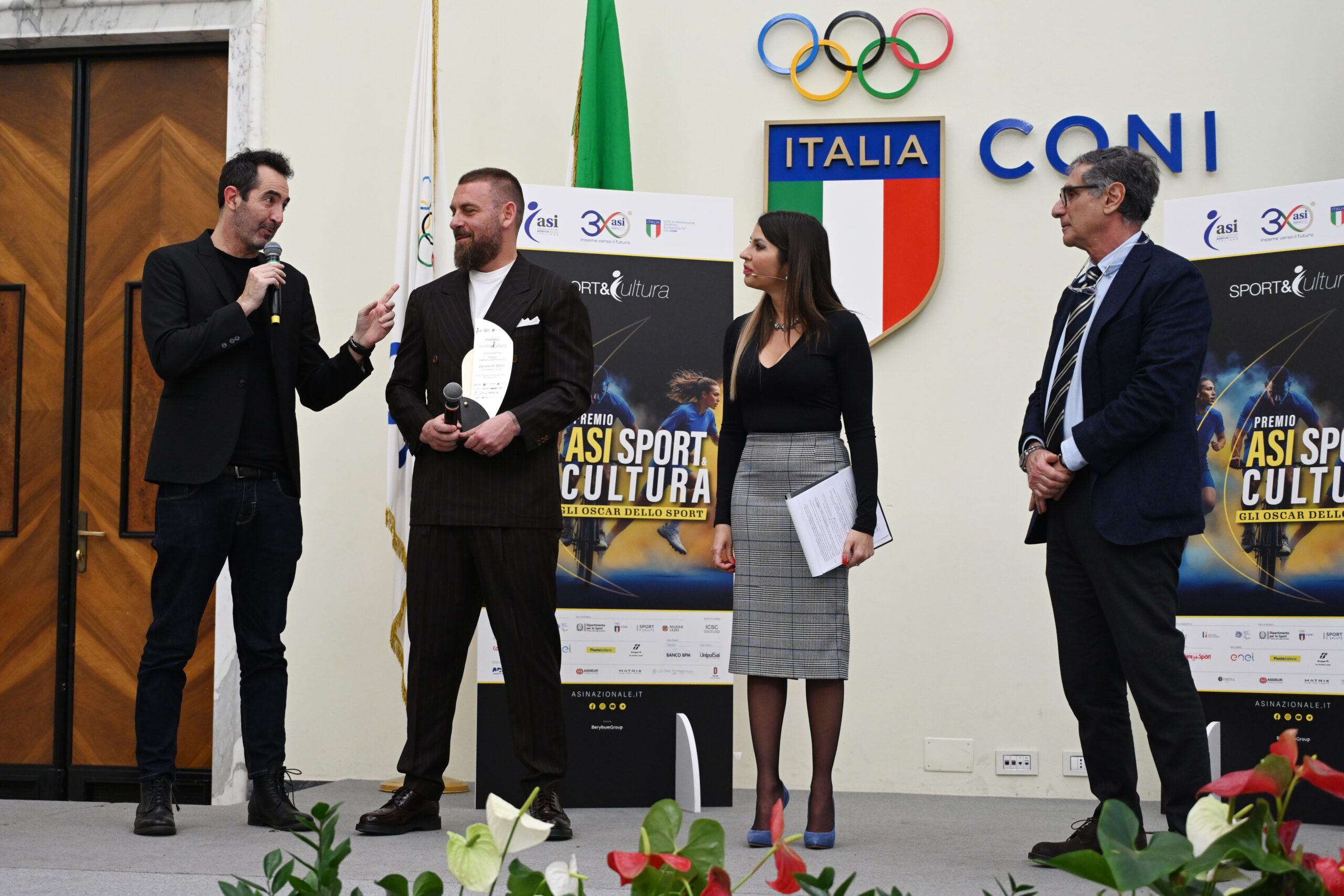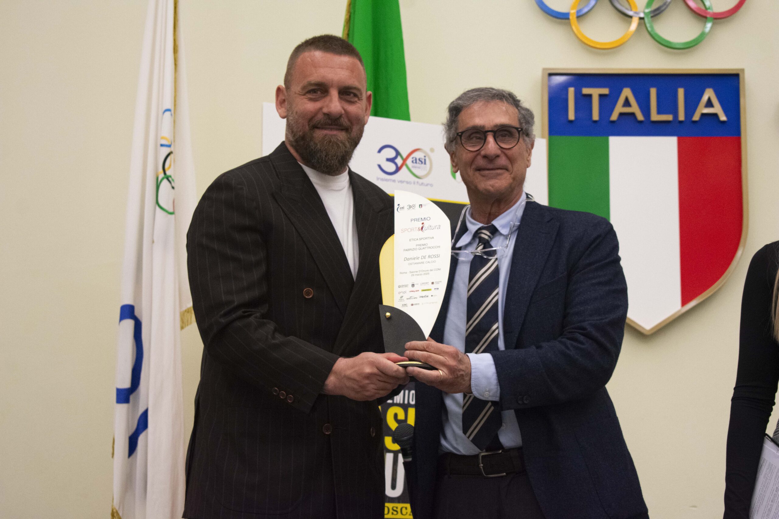 Con questi principi ispiratori si è consumata la diciannovesima edizione: Daniele De Rossi, la coppia d’oro della vela olimpica Tita-Banti, il Mundialido, torneo di calcio multietnico, la Cantù Arena e il progetto Sintesi, sono i cinque vincitori premiati al Salone d’Onore del CONI a Roma. All’evento, condotto da Claudia Conte e Remo Pannain e che ha chiuso di fatto i festeggiamenti del trentennale di ASI, hanno presenziato personaggi del mondo dello sport, delle Istituzioni, dello sport e dello spettacolo. Tra i presenti in sala, il Presidente del CONI Giovanni Malagò, il Presidente Sport e Salute Marco Mezzaroma, il Presidente dell’Istituto per il Credito Sportivo e Culturale Beniamino Quintieri, il Presidente del Consiglio Regionale del Lazio Antonello Aurigemma.