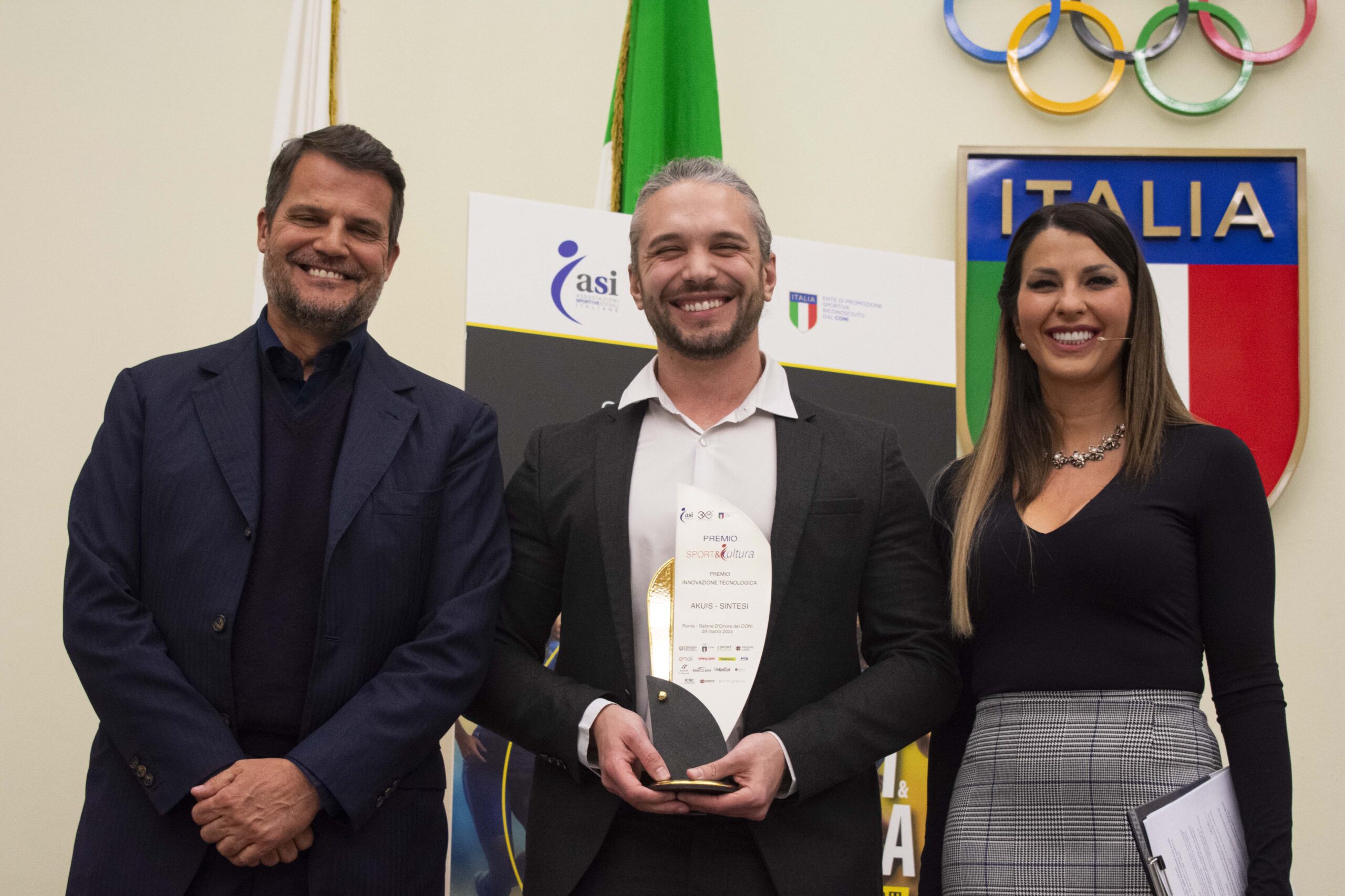 Lo sport è sempre più legato alla tecnologia, con strumenti che migliorano le performance, rendono le competizioni più sicure e favoriscono l’inclusione. Questa categoria premia aziende, start-up e professionisti che hanno introdotto soluzioni tecnologiche all’avanguardia, dai dispositivi di monitoraggio alla biomeccanica applicata allo sport. Nella sezione “Innovazione tecnologica”, ha vinto la startup Akuis del settore fitness, che ha sviluppato Sintesi, una smart gym che permette di allenarsi a casa o in palestra occupando solo 2 metri quadri di spazio. Questo macchinario racchiude tutte le funzionalità delle macchine presenti in un centro fitness, offrendo un’esperienza completa e innovativa per l’allenamento personale. Ritira il premio Mattiarmando Chiavegato, co-fondatore di Akuis. A premiarlo, il Presidente di Sport&Salute Marco Mezzaroma che ha sottolineato: “Far alzare gli italiani dal divano e farli muovere è l’obiettivo principale di chi ha il compito di promuover e lo sport in ogni forma e su tutto il territorio nazionale”.