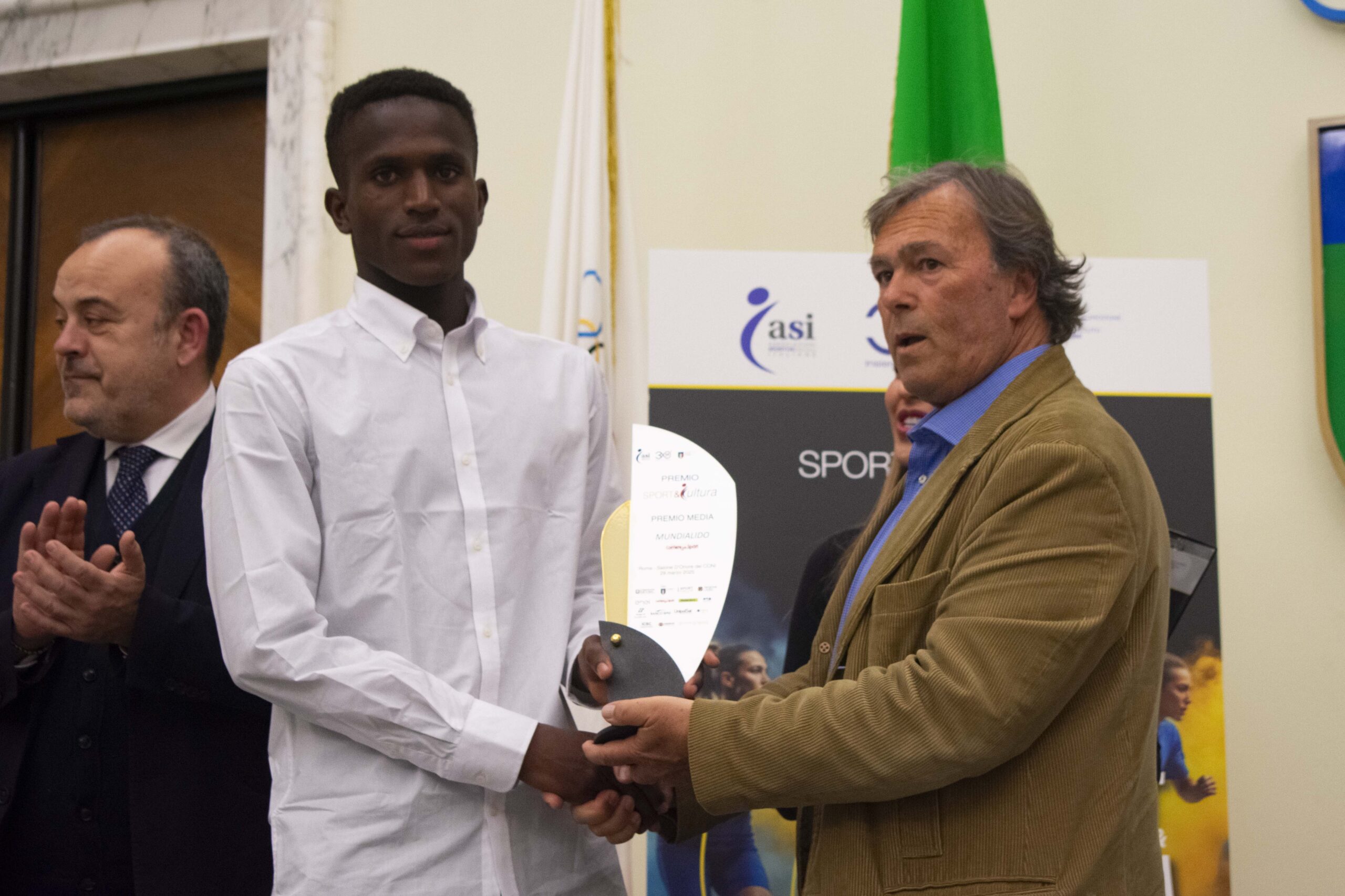Ritira il premio il patron del Mundialido, Eugenio Marchina. A consegnare il riconoscimento Antonello Aurigemma, Presidente del Consiglio regionale del Lazio, la Regione di origine del premio che da sempre è impegnata nella promozione dello sport e delle politiche sociali). Con lui, Marcello Saitta, Direttore del Banco BPM che fattivamente dimostra interesse e sensibilità verso le attività sociali come dimostrato dall’attenzione riservata negli anni ad ASI attraverso il sostegno a iniziative che coniugano etica, innovazione e impegno sociale.
