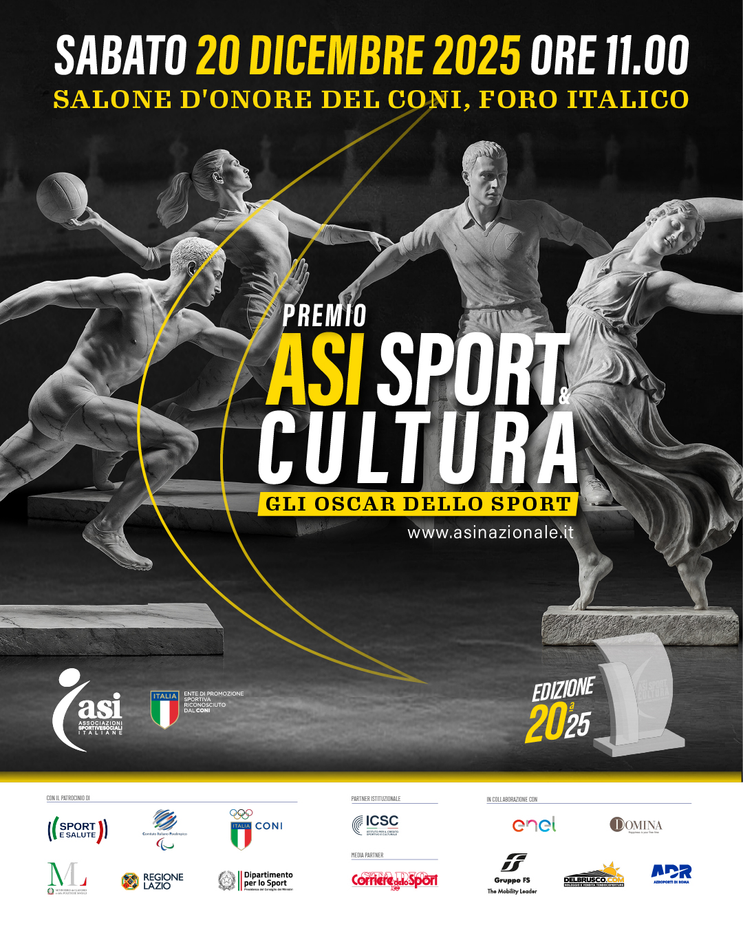 Quando si parla di sport in Italia, spesso si pensa ai grandi stadi, alle medaglie olimpiche o ai record. Ma dietro ogni gesto, ogni allenamento, ogni progetto sociale c’è un mondo di valori che ASI ha voluto celebrare fin dal 2006 con il Premio Sport&Cultura. Nato in occasione del decennale dell’Ente, questo riconoscimento è ormai diventato un appuntamento fisso e significativo per lo sport italiano, arrivato oggi alla sua ventesima edizione.