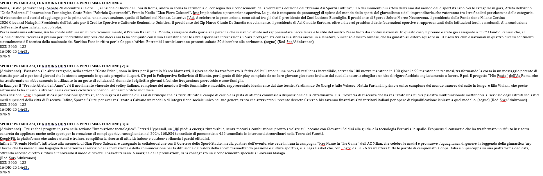 Asi Nazionale | 16 Dicembre 2025