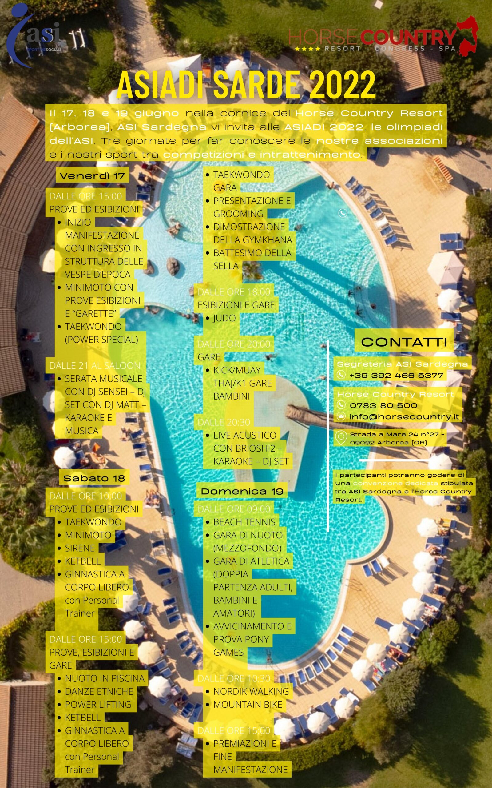 Quale significato assumono le ASIADI dopo uno stop di due anni causa pandemia? “Senza dubbio un’importante vetrina per far conoscere il mondo sportivo ASI con tutte le sue discipline e sottolineare quanto sia importante il ritorno alla normalità. Un evento come questo diventa momento di aggregazione e socialità: un intero weekend all’insegna della promozione dello sport e del sociale in una location d’eccezione, l’Horse Country Resort”.