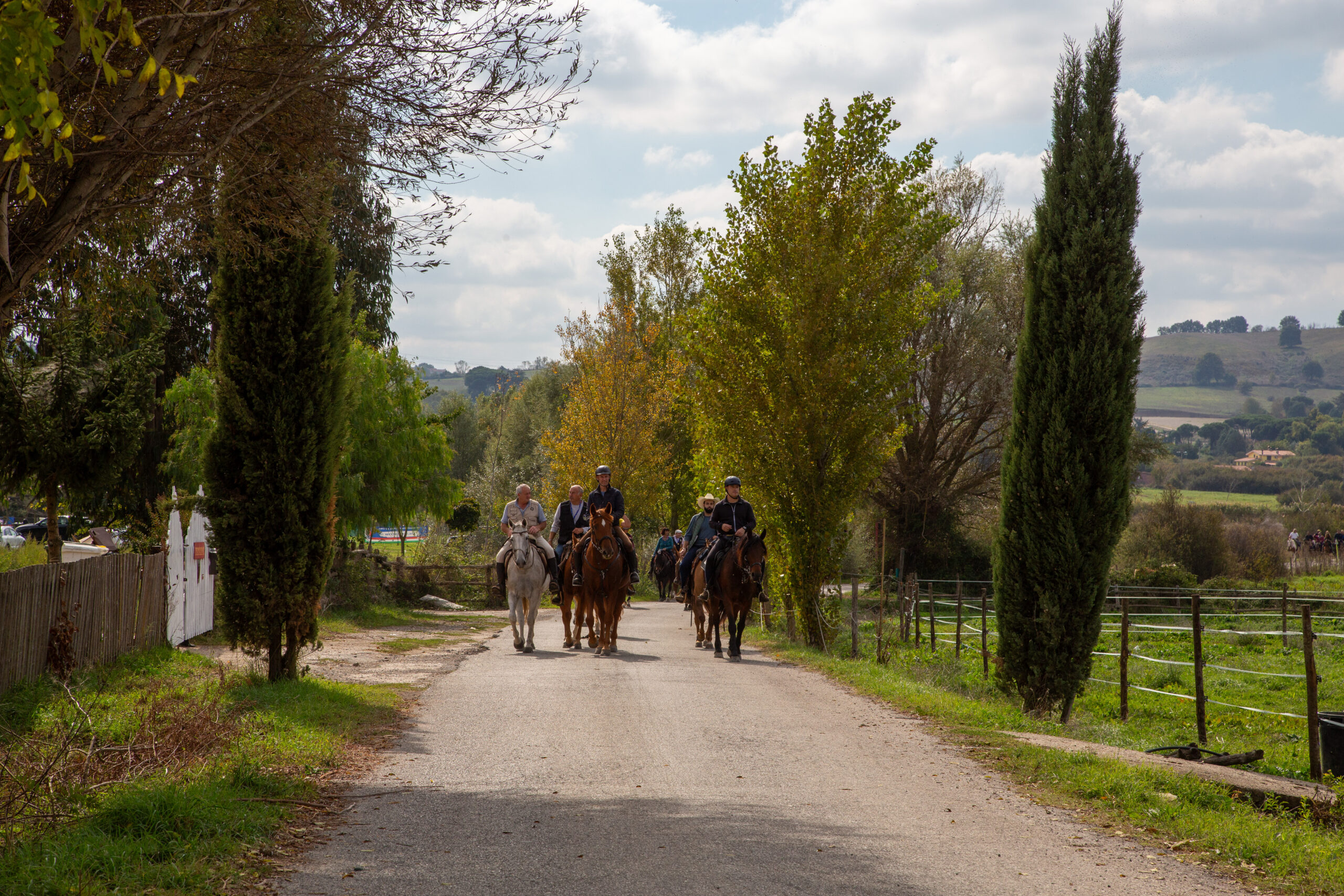 Cavalieri e amazzoni provenienti da Lazio, Umbria e Toscana hanno preso parte all’equiraduno “CAVALCANDO LA FRANCIGENA”, percorrendo insieme il tratto della Via Francigena del Nord che attraversa il borgo medievale di Campagnano, il Santuario della Madonna del Sorbo e le Valli del Cremera, nel cuore del Parco di Veio, fino alla Valle di Baccano.